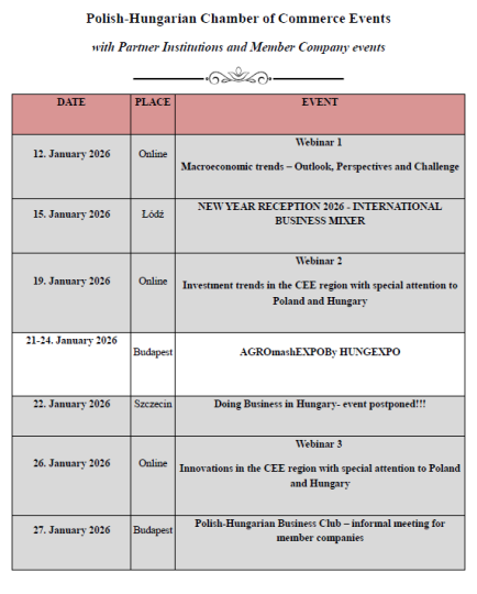Webinar series on market developments with special attention to Poland and Hungary has been launched by the Polish-Hungarian Chamber of Commerce this winter season